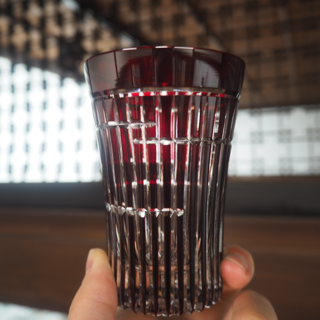 ◆江戸切子 重ね矢来 一口ビール(赤) (1名様)